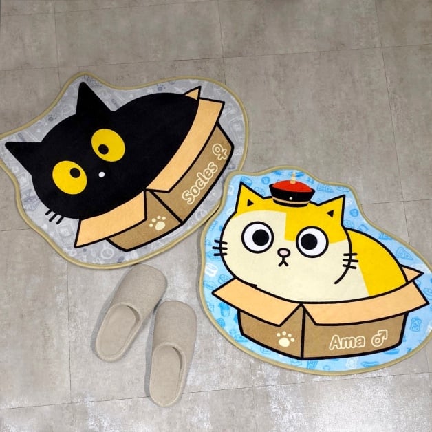 躲在紙箱裡的喵喵太萌了啦!「裝紙箱系列」造型同步推兩種商品,「造型地墊」有人氣角色黃阿瑪、搜可史,大尺寸設計無論放在浴室、房間門口都好用,但看著這麼可愛的臉,怎麼捨得踩下去啦~