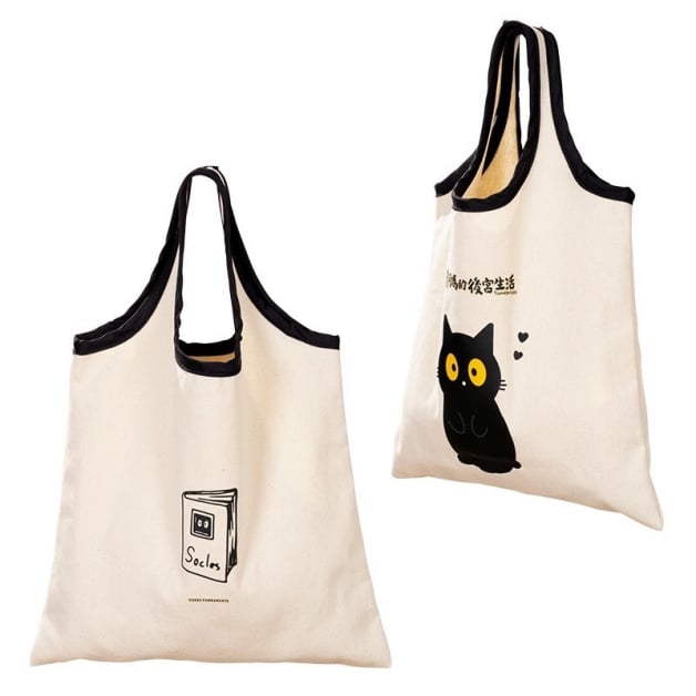 文青風+貓奴妞妞們一定要收「手提袋」、「小提袋」、「托特包」,手提袋上印有超萌的SOCLES,純棉帆布材質觸感也很舒服,包體輕且體積大,東西可以全部丟進去,最適合妞編輯這種東西超多的人了!(笑)