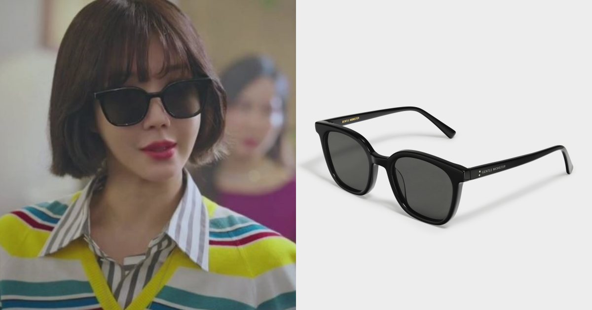 柳真所飾演的女主角之一-吳允熙,在劇中的選擇的是GENTEL MONSTER的GABEE-01鏡款,偏長臉的他選擇的是方中帶圓的大鏡片鏡款,Oversized的鏡框設計,墨鏡本身就散發霸氣氛圍,微弧形斜切面前框簡約俐落,這樣的設計其實不太挑臉型,不過臉型比較短的妞妞們可能要稍微注意一下,鏡框過大可能會讓臉部比例比較擠一點喔!