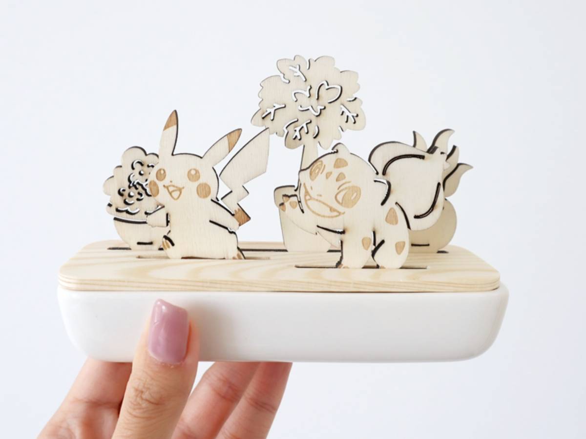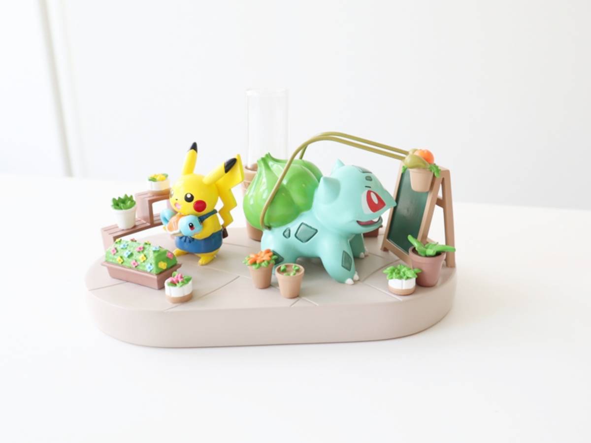 桌面小物則有木質擴香盆、隨附迷你花瓶的模型可收,擴香盆以皮卡丘與妙蛙種子為主角,可在盆中放入喜歡的精油,用香氣隨時療癒自己;而仔細看模型,大家有發現皮卡丘手上拿著「傑尼龜澆花器」嗎?(笑)