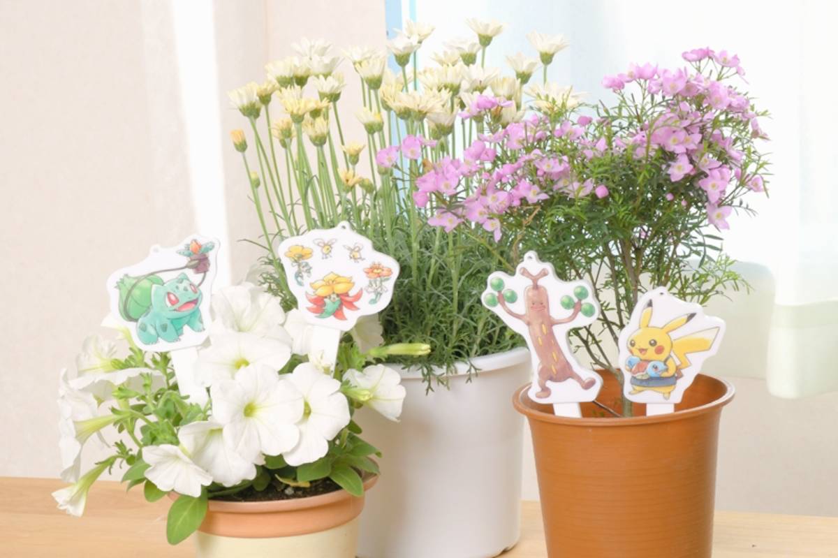 緊扣園藝店主題,這次也有植栽週邊可入手,像是可愛花盆的黃色萬壽菊、白色百日菊,以及印著走路草、皮卡丘、妙蛙種子等寶可夢的繽紛插畫版,不僅能插入土裡裝飾盆栽,還可以拆下作為吊飾使用。