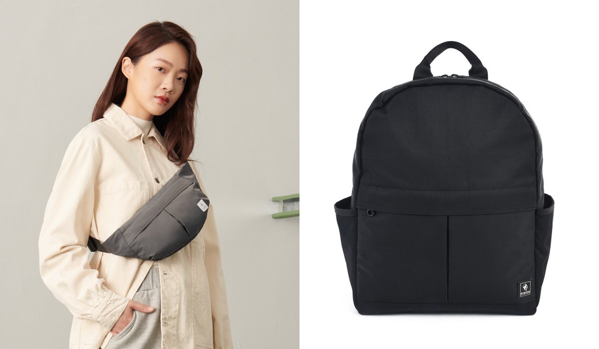 另一款BUNK系列是今年秋冬全新的材質組合,以尼龍的延展性搭配PU的光澤亮感,結合PORTER受歡迎的MILKY及MORI系列的袋前設計,而包款袋上袋的設計概念也非常有層次感,其中有一款從相機包改良而來的小肩背包,一次共有斜背、手提、頸掛三種不同背法,非常特別!