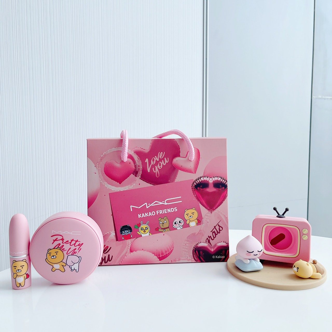 5/1~5/31購買任一KAKAO FRIENDS粉限量時尚專業唇膏、氣墊粉盒與超持妝全能氣墊粉蕊乙個,即贈M·A·C XKAKAO FRIENDS粉限量告白禮盒(數量有限,贈完為止)