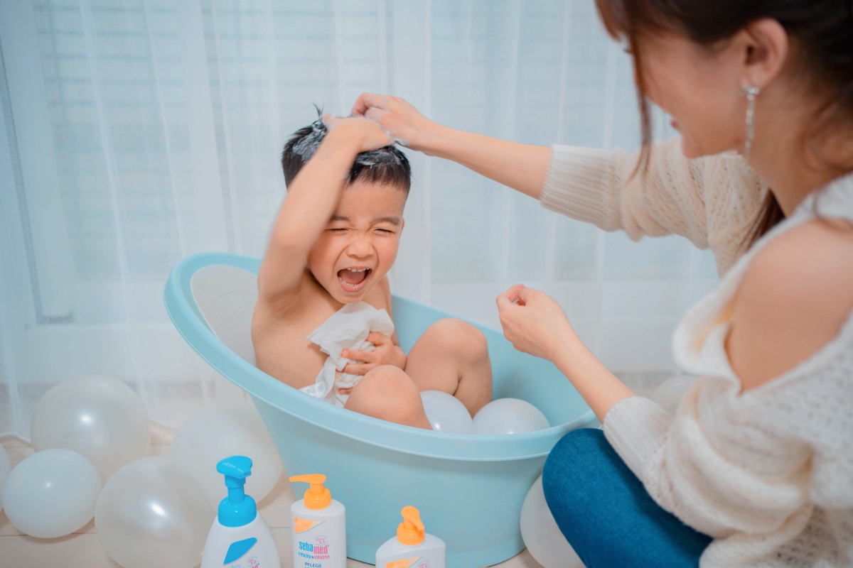 因此媽咪們不只要隨時幫寶貝把汗擦乾,還要選擇有溫和清潔、修護功能的沐浴乳(妞編輯不建議媽咪挑選清潔力太強的產品喔!),把汗水、髒污洗掉的同時,又能修復、建立起肌膚屏障。