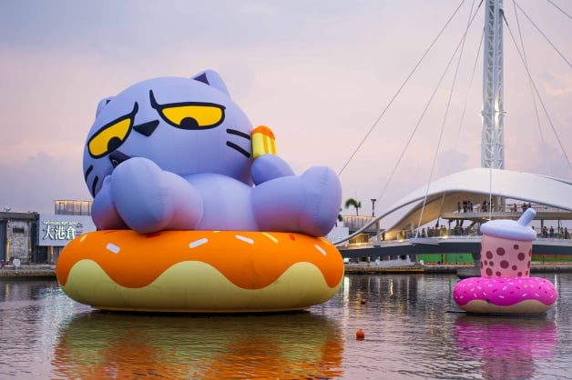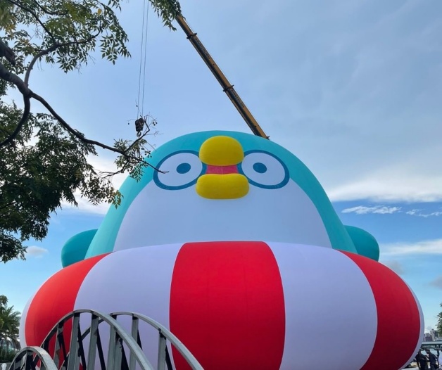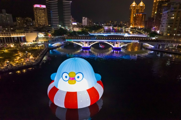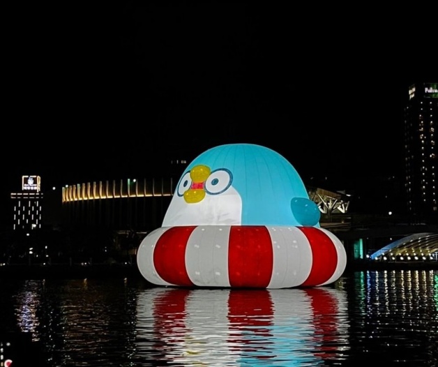 「PPMini小小企鵝 」漂進愛河和小海豹一起軟爛,堪稱是「企鵝界的當家代表」,在聊天室他總是以動感十足的超滿情緒表達生活中的各種喜怒哀樂,這次特別設計搭配紅白游泳圈,整體造型寬達20公尺、高達14公尺,看看企鵝用最逗趣可愛的造型陪大家吹海風、看美景,而且小手收已經迫不及在愛河灣上玩水,妞妞們還等什麼,快去捕捉胖鵝的身影吧!(笑)