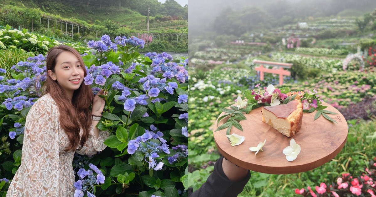 再來要推薦觀賞繡球花的景點是「花谷海芋園」,這裡不只可以品嚐甜點、欣賞繡球花,這邊還特別在花叢裡置放了浴缸和躺椅,妞妞們可以直接坐在裡面拍美照。餐點部分妞編輯特別推薦果粒茶、鬆餅&栗子香草咖啡,面對著小油坑的景致實在是派愜意啦!(採花&下午茶有推出優惠套餐呦)