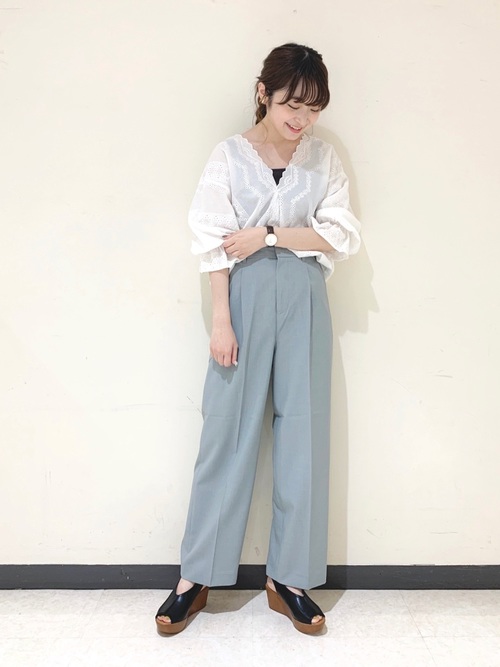 藍色可說是夏天定番色系,簡單的灰藍連身褲搭配花邊領口的罩衫,裡頭還有一件黑色小可愛,若隱若現穿出多層次感,是職場女孩絕對要筆記的都會時尚。