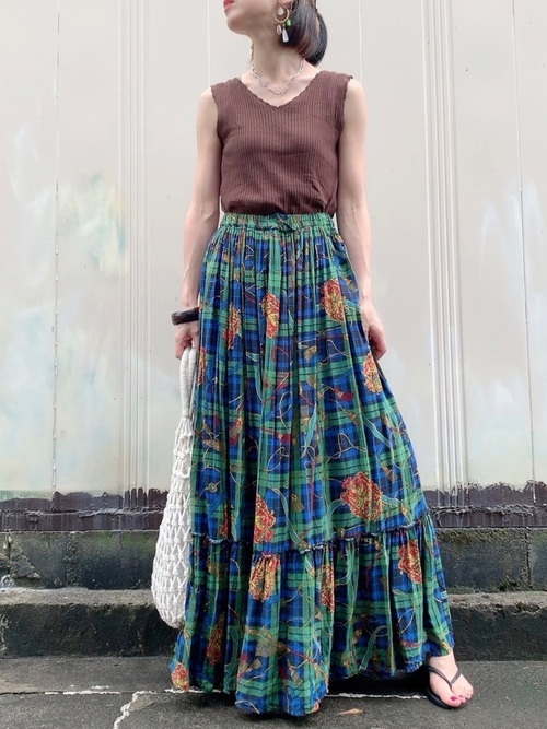 今年復古風又開始流行,妞妞們也入手一件落地花長裙吧,藍綠格紋相間配上紅棕花叢點綴,不要以為它很難駕馭,其實隨便搭一件素色背心就很美囉!想要更吸睛的話也可以嘗試上衣穿蕾絲、宮廷袖等具有女孩味的單品,保證馬上甜美起來!