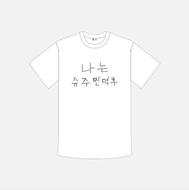 接下來這幾位就讓粉絲滿頭問號了!東海在白色T恤上,用各色原子筆非常藝術的直接畫滿下半部,粉絲看到笑歪表示:「是在試新買的原子筆嗎?」「面積最大CP值最高?」而銀赫則是大大的在T恤中間寫上「我是SUJU真愛粉」(到底?),神童也在胸口寫著:「今天辣炒豬肉」(點餐?),讓大家笑翻大呼:「是認真的嗎?」「果然只有SJ敢這樣玩」、「穿出門會被媽媽罵」,網友們更翻出成員以前的手寫信件比對字體,認證真的是親手製作,順帶一提這一件要價3萬5韓元呢~(大約台幣900多元)