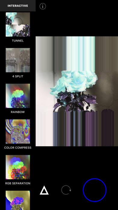《Oblique》內建濾鏡風格相當奇幻特別,有扭曲、分割、色調分離、鏡像等特效可使用。不過這款App並不是「照片編輯軟體」,無法對照片進行後製,拍攝時選擇效果就能拍出酷炫照囉!