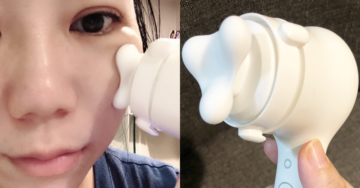 除了每日用來洗臉之外,最推薦的就是這個按摩功能與緊顏按摩頭,其實這個功能去年就已經推出第一代,參加記者會時透過邱品齊醫生的講解與現場的示範讓妞編輯大大心動,它的設計原理是以頻率75赫茲做為音波按摩功能,每3分鐘27,000次的重點深層按摩來刺激臉部,距離經過精密測量的三點按摩頭材質為真空鍍膜的柔性矽材製成,觸感非常光滑,因此不怕有拉扯感,平常擦完乳霜透過它震動推拉不但能讓保養品快速吸收還有拉提的效果,用過的網友也都ㄧ致好評,全機防水淋浴泡澡都能使用。(尤其臉部水腫時也很好用喔~)