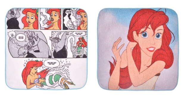 手帕有動畫版愛麗兒、愛麗兒&烏蘇拉漫畫兩款,其中,漫畫款讓人看了立馬回憶湧現,是經典的「愛麗兒以聲音交換雙腿」的那一幕!