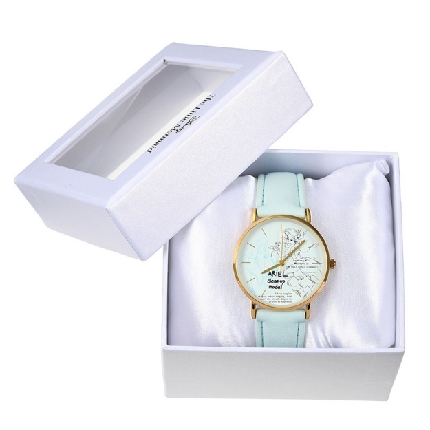 手錶以淺湖水綠為主色,錶面印上了愛麗兒美麗的倩影,集成熟與優雅於一身。