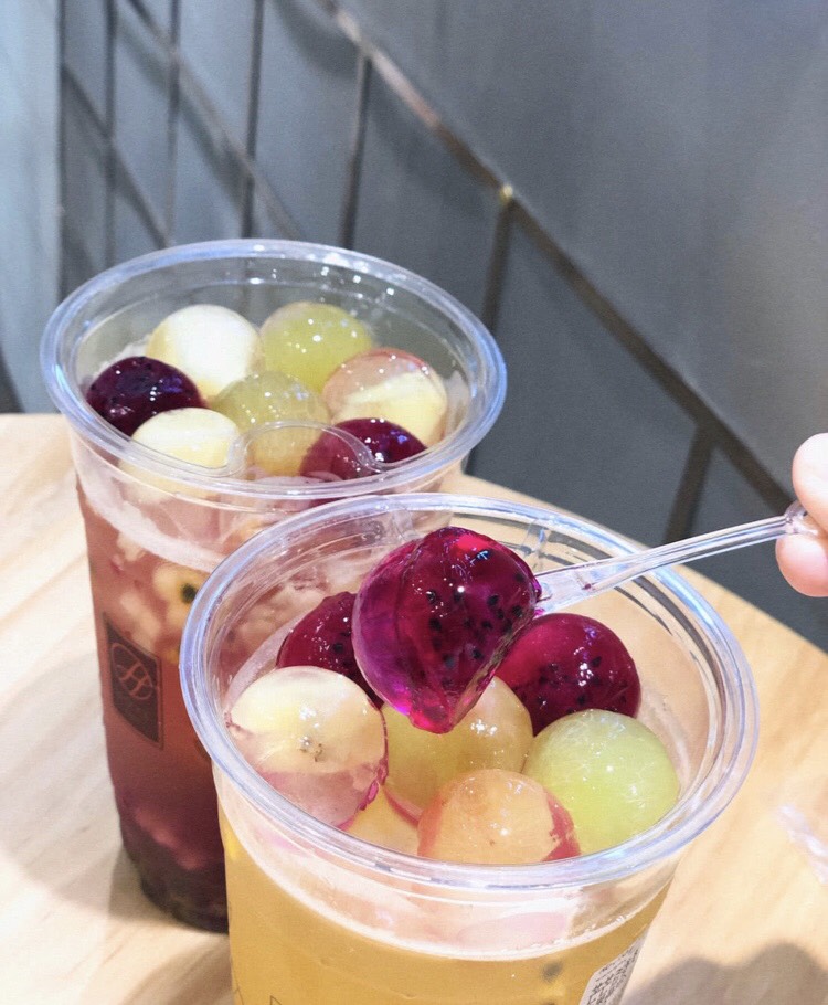 妞編輯的貼心小提醒:單點飲料是沒有水果晶球的啦!!大部分的妞妞們都會再加點一份放在飲料上層的水果晶球,共有三種口味:火龍果、鳳梨、巨峰葡萄。除了插起來直接食用之外,也可以加入飲料內用吸的,保證每一口都可以吃到新鮮果肉,絕對超值!