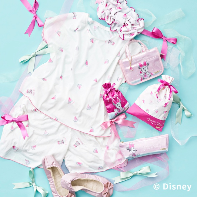 這波以「Relax&Happiness」為主題送米妮先去度假(笑),不但穿上可愛的比基尼、戴上墨鏡大變身,還換上「西瓜洋裝」大嗑西瓜愜意的進入放假模式,不只有米妮加持,同時以代表色「浪漫粉紅」全面打造,一口氣推出髮帶、居家服SET、娃娃鞋、牙刷袋、保溫瓶、抱枕等聯名居家小物,光看就超療癒!(日本6月4日開賣)