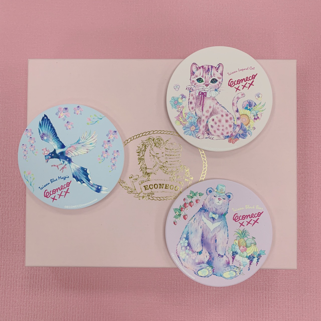 ECONECO南西誠品快閃店開幕時,繪子貓老師將為大家介紹這次設計四個台灣限定角色的靈感及特色,角色分別為台灣黑熊、石虎、台灣藍鵲、台灣獼猴,四個台灣保育類動物化身為超萌粉色系的ECONECO角色,繪子貓老師說:「石虎是我最喜歡的一個角色,第一次看到石虎的照片就對這個動物非常感興趣,迫不及待的想要設計,而且每次畫這個角色時都非常快樂,嘴角都會不自覺的微笑。」老師也有分享自己看到台灣黑熊的時候覺得跟日本的「月の輪熊」很相似,台灣黑熊胸前是V的圖案,而「月の輪熊」的胸前是半月形的,所以覺得看到這個角色特別的親切,而且還透露自己正在設計不同姿勢的台灣黑熊,粉絲朋友們可以期待之後的作品會呈現給大家。