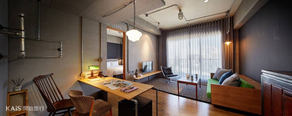 走進友愛街旅館,輕工業風的裝潢、書架上滿滿的書,以及音響播放機等,旅人們馬上就能感受到不同於一般飯店的氣氛,入住時旅館還會提供與台南相關的旅遊書,讓你對台南有更深入的了解。