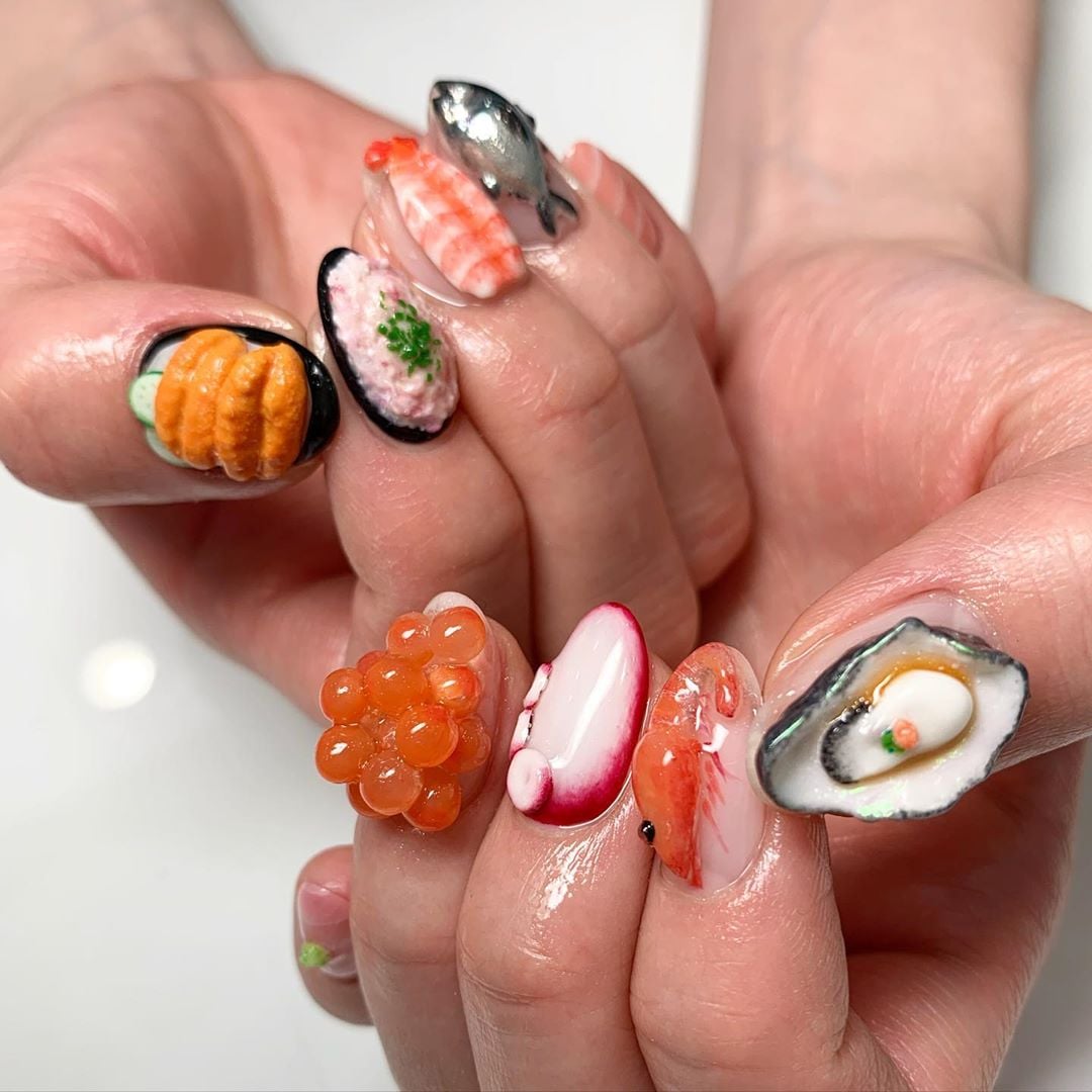 除了握壽司之外,生魚片也是旅日必嚐,鮮蝦、牡蠣、生章魚、海膽、沙丁魚、鮭魚卵......看著看著口水都要流下來啦,這位美甲師看起來「用料」一點也不手軟啊。(笑)