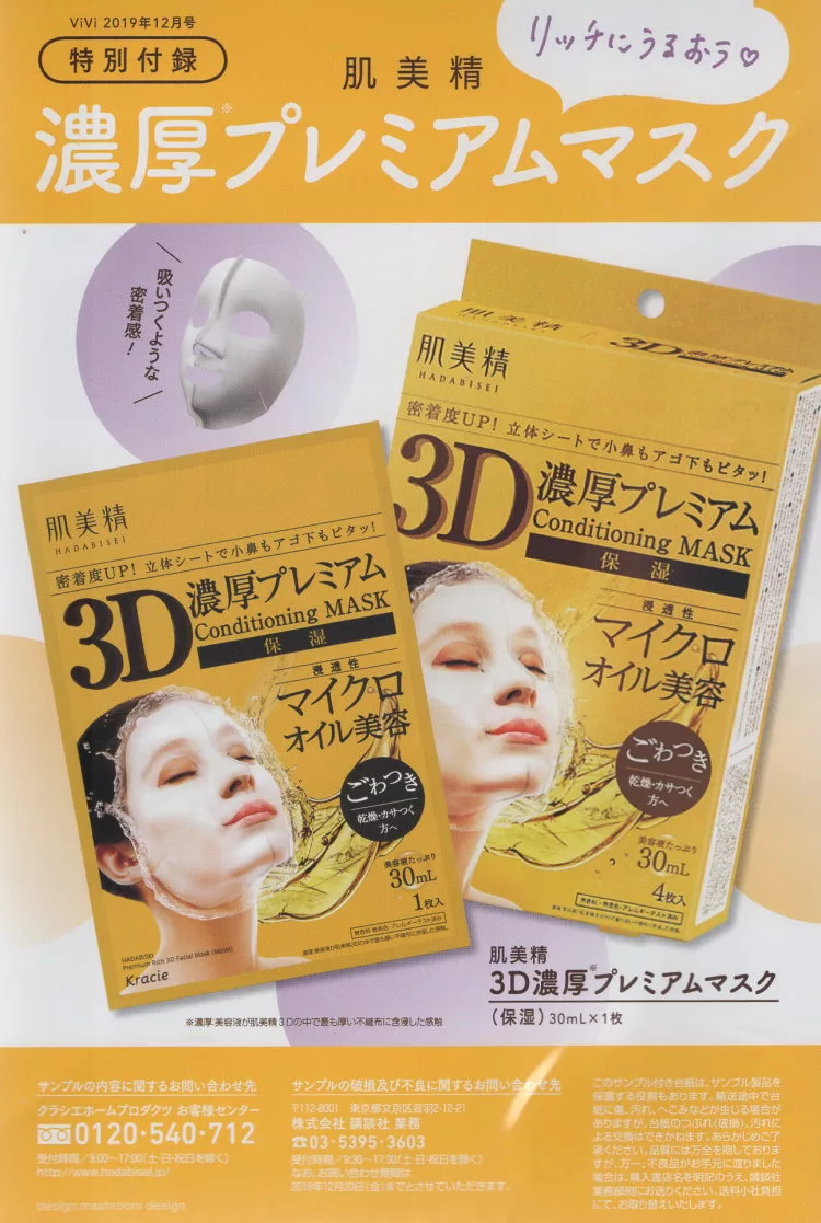 以時髦可愛為最高原則的《VIVI》這期不僅嚴選秋冬最搶手的拿鐵色調商品,還傳授茶色系的迷人妝容,在打造完美妝容前當然要先把肌膚保養好!這次《VIVI》附上「肌美精立體3D面膜」一片,滿滿的精華美容液可以改善寒冬容易帶來的肌膚乾燥困擾,跟著日妞這樣保養準沒錯啦~
