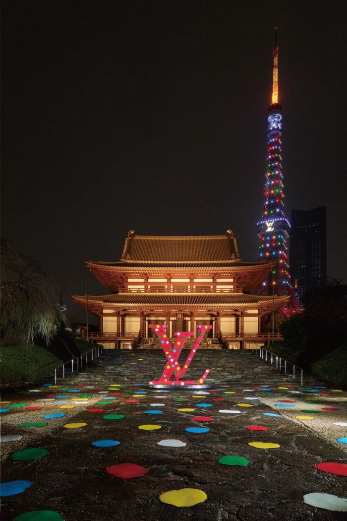 LV出手就是包下整個東京!為了這次與草間彌生的二度聯名,日本東京的街頭每個轉角都是驚喜,從許多日本網友們分享的大量照片與影片可以看到,走在路上有滿街跑的波卡圓點箱型車,抬頭一看就能見到南瓜造型熱氣球,其中在新宿站東口的3D動畫櫥窗更有草間彌生探頭的超可愛視覺藝術設計,另外在增上寺前的廣場也放置了LV彩色點點Logo雕塑、南瓜、不鏽鋼球裝置藝術品,就連著名的地標東京鐵塔都被LV logo與彩色圓點投影加身,整個東京就這樣成了日本最大的草間彌生最新作品!