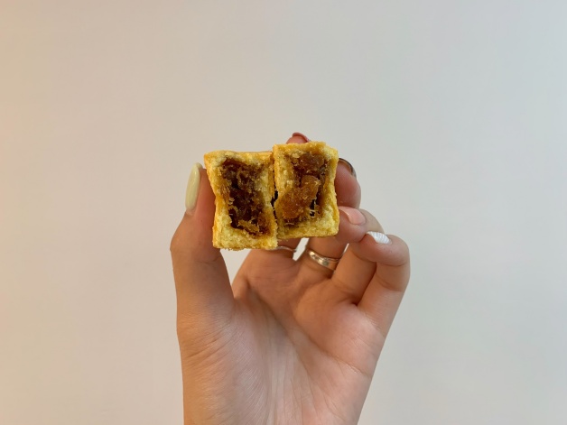 妞妞們一打開「檸檬起司鳳梨酥」,首先撲鼻而來的便是檸檬的清香和起司的奶香,兩者融合交織在一起,一口下肚,與土鳳梨的果肉完美契合,口感上不僅清新又解膩,小小一塊令人回味無窮,好吃到讓人一塊接著一塊,妞編輯最愛的就是它散發的檸檬香氣,就算不是中秋節,也會拿來當下午茶小點啊!
