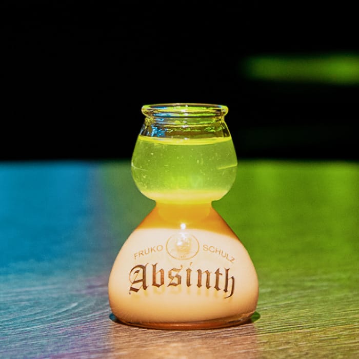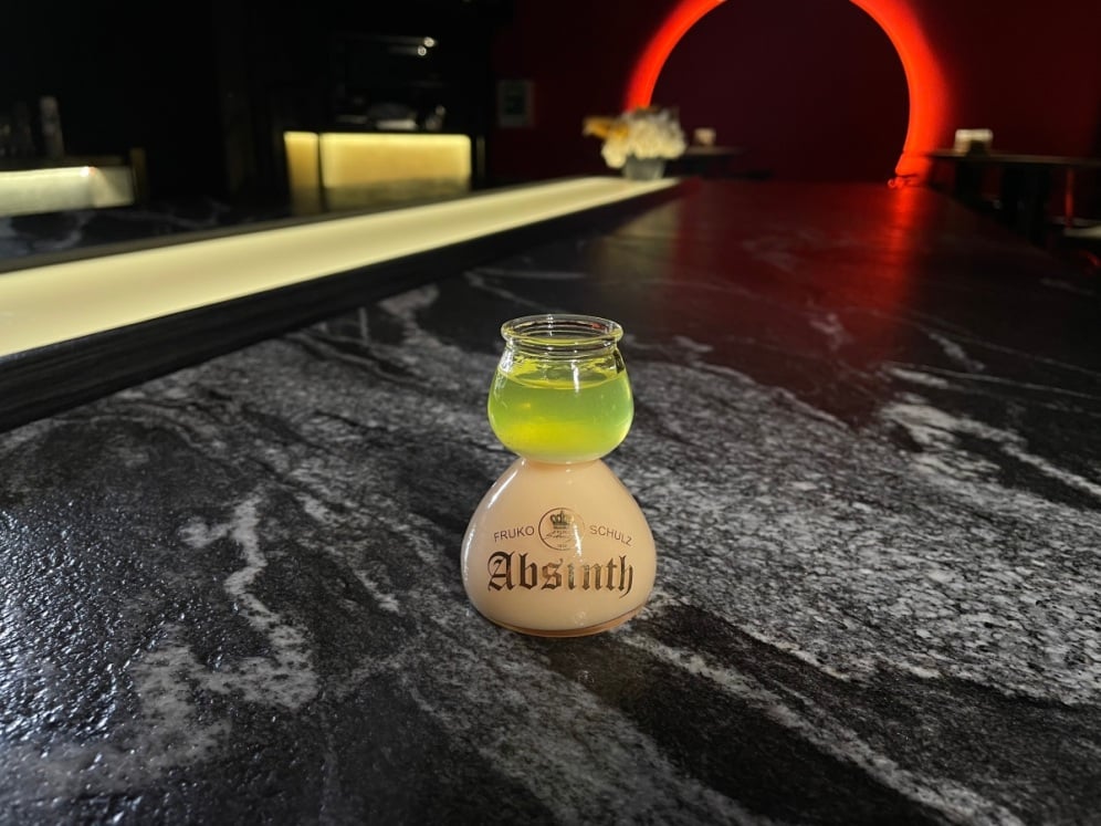 這杯艾碧斯養樂多炸彈顧名思義就是艾碧斯+養樂多,底下先加入養樂多至中線,再緩慢加入艾碧斯,利用糖分與酒精的比重關係,讓艾碧斯漂浮在炸彈杯的上層。欣賞完漂亮的漸層炸彈後,就可以「一口」把它乾掉,雖然剎那間會先被艾碧斯的高酒精濃度嚇到,但緊接而來養樂多的乳酸口感會和艾碧斯的藥草香氣結合,最後嘴裡只會留下溫馴的八角氣息及養樂多的酸甜滋味!(冰冰的艾碧斯一點都不恐怖,所以拿到Shot請馬上喝掉~)