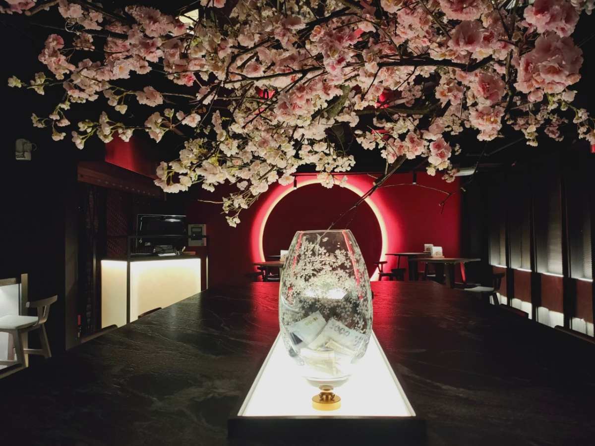 雖然是在地下一樓,但不會找不到路,在旅館門口就可以看到一片恣意盛放的花海,上方有著Bar Weekend的招牌,沿著飯店餐廳向前走就可以看到在樓梯間盛開的櫻花樹,彷彿引領你走進世外桃源般地靜謐。酒吧裡沒有浮誇的裝潢,天花板盛開的櫻花樹中和了吧台、桌椅的線條;而前方的夕陽,可以讓酒客們一邊依傍著落日餘暉,一邊喝著調酒享受恬静幽雅的夜半時分。
