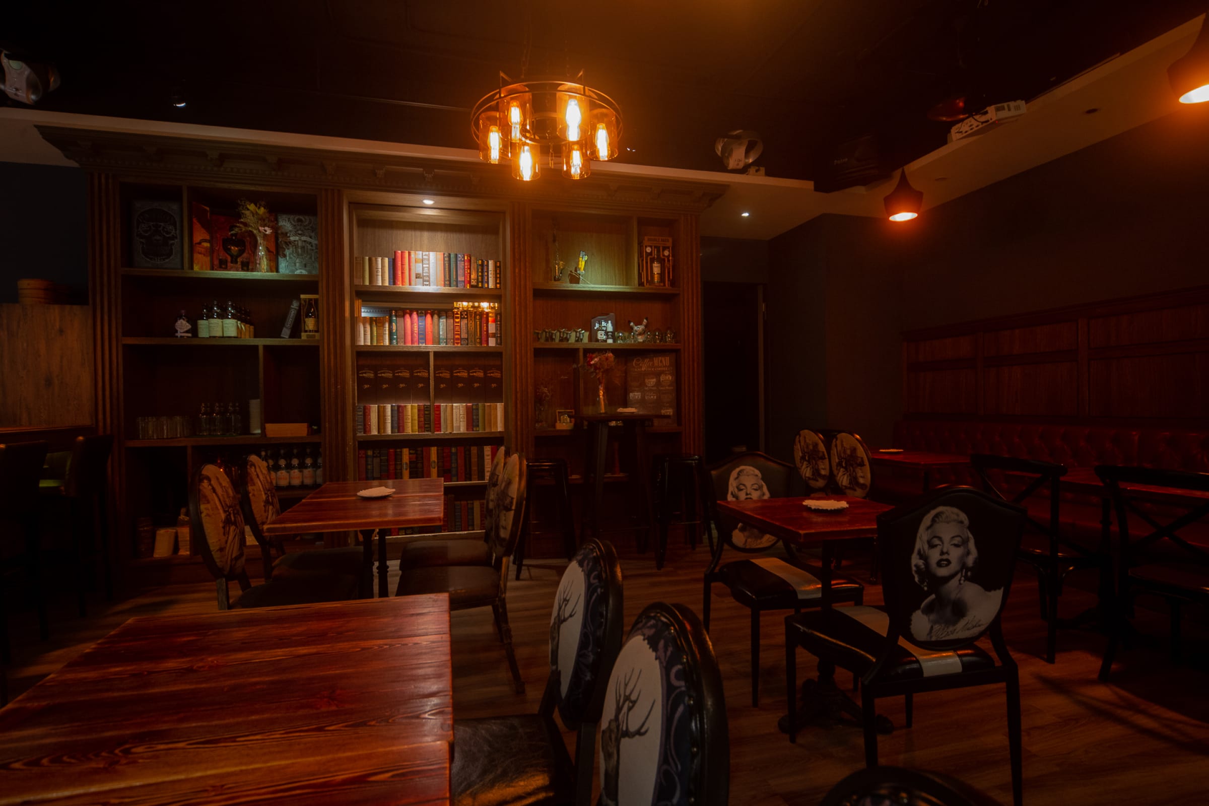 店內空間不小,更有著整面書櫃和復古裝飾,整體感受很有中世紀書房的感覺,在電影和小說中,書房裡總藏有各種祕密,而「Mr. BEAN Taipei」也不例外,內凹的書櫃是個隱藏空間,把門推開後還有另一個世界呢!VIP ROOM私密空間搭配著一台大電視和KTV裝置,更有舒服的沙發(喝醉很好躺),很適合慶生或是帶姐妹們來包場歡唱的啊~