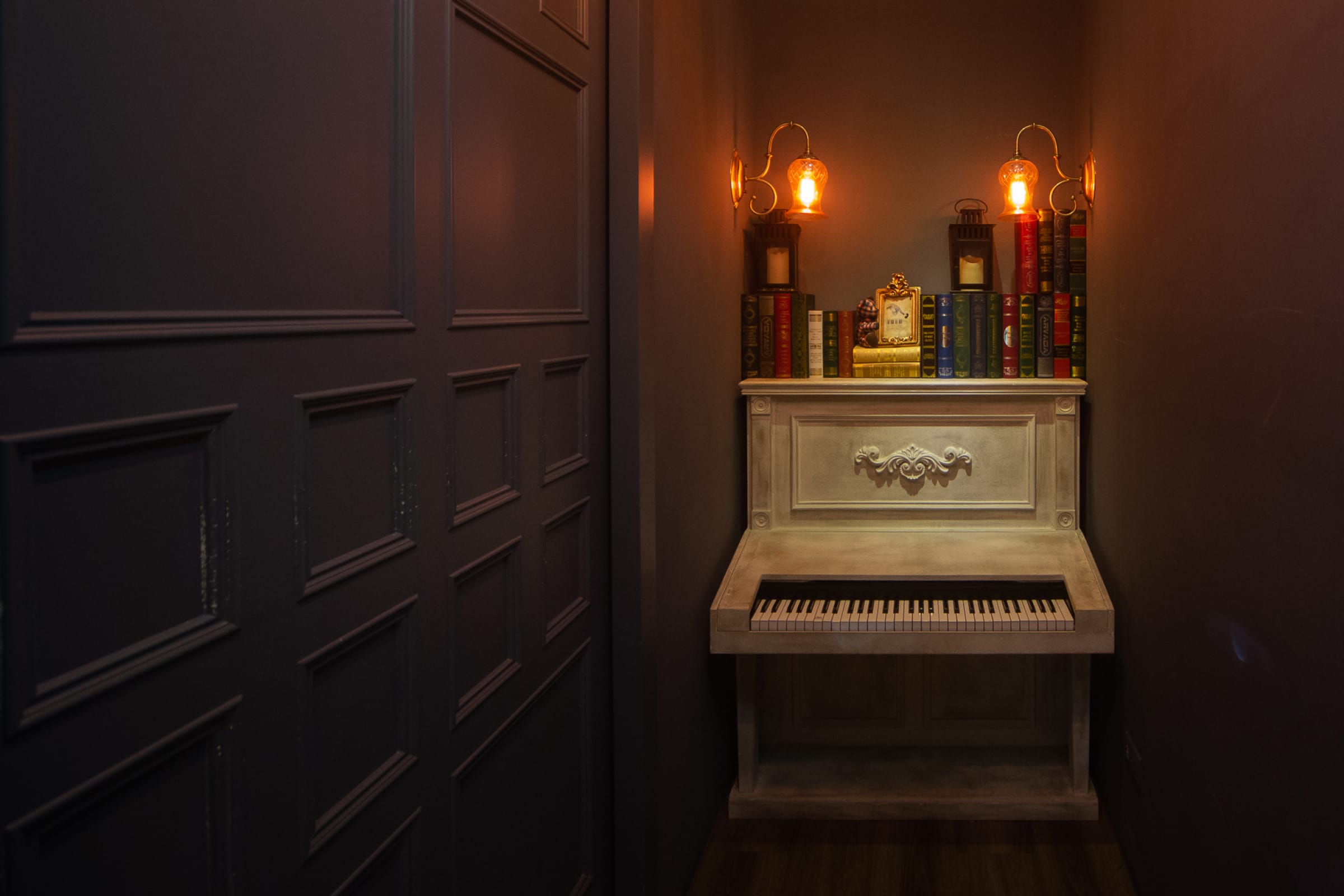 「Mr. BEAN Taipei」在仁愛路大馬路旁,不過從灰黑冷色調外觀完全看不出來什麼來頭,差點就會沒發現酒吧就在這裡而走過頭(笑)~推開門,玄關邊只有一架鋼琴,從鋼琴上方的相簿中找尋謎底,然後在琴鍵上敲下通關密碼,如果找不到也能看看圖片上的指示喔!