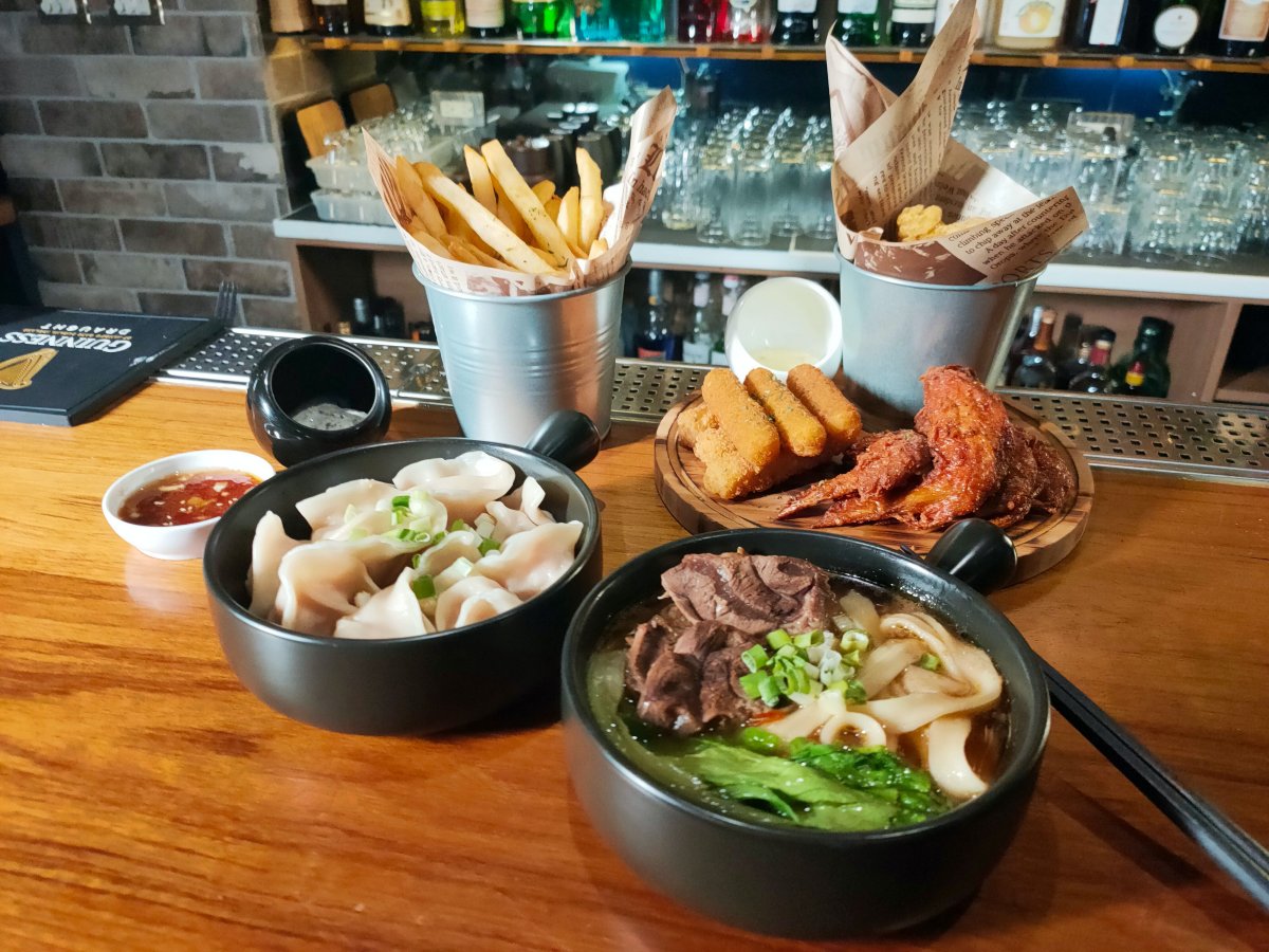 「福昊室 FullHouse」餐點不多但都可以嚐到老闆的用心,種種細節都能體會到老闆在餐飲業界數十年累積的心血,首推就是店裡的水餃啦!許多人更是笑稱FullHouse是被調酒耽誤的水餃店(老闆還自稱自己是水餃控XD),皮香Q、餡鮮美多汁,連沾醬都超級好吃呀~特製的醃醬炸雞翅更是一絕,香鹹酥脆,一口咬下雞汁香氣溢滿齒間~還有有著松露沾醬的薯條也是別的地方吃不到的下酒必點小點,最後老闆更加推店裡的牛肉麵,肚子餓的話可以直接來這裡選購一套「錢櫃套餐」喔(XD)!