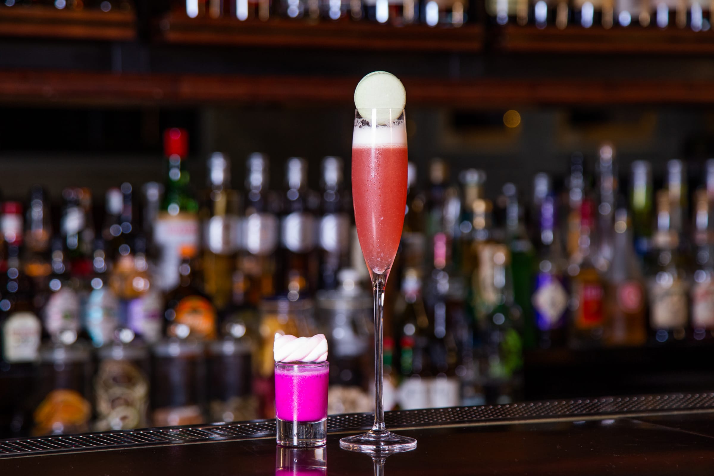 而這杯「Pink Shot」是用紅火龍果為主體,還帶有接骨木花的香氣,裡頭還混合了鮮奶油提升它的滑順口感,喝起來就像是在喝一杯火龍果汁,配上一顆可愛的烤棉花糖,那少女心完全噴發啦~