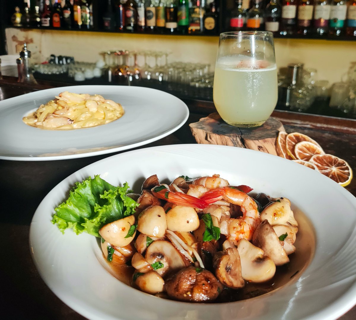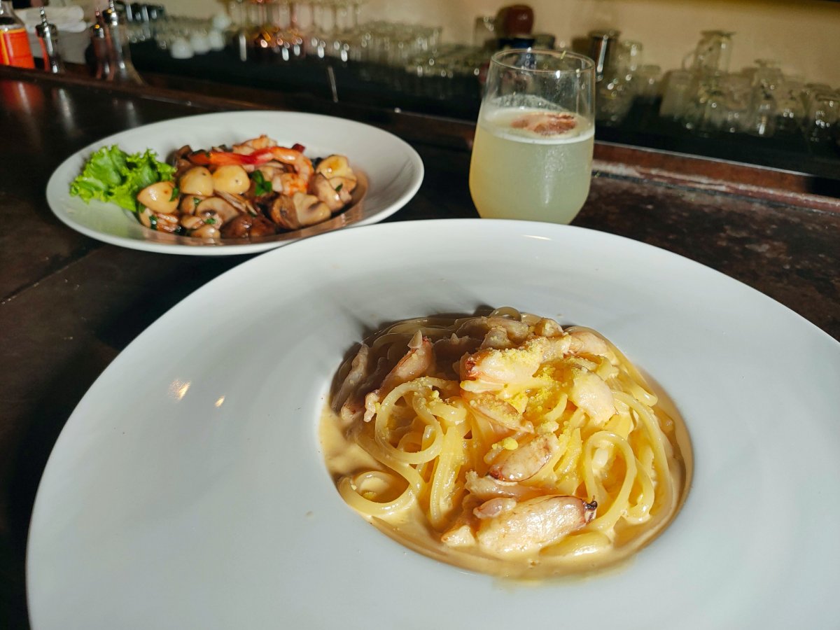 當然,只有熱情要維持一家二十年的老酒吧是不夠的!MONO MONO的餐點也是很多夜貓族饕客的秘密口袋名單~像是這款妞編輯最愛的「蟹肉海膽義大利麵」,更是每來必吃,每一口都吃得到新鮮海味,濃郁的奶香加上海膽醬真的超級美味!