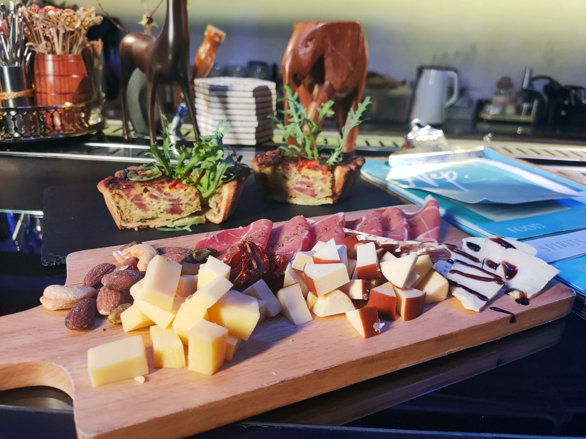 店內的食物飲料非常多元,主廚會在每季更換菜單與適合當季節的菜色,像是這道「生火腿綜合起司堅果拼盤」就是店裡客人非常喜歡拿來配酒的小食,有三種不同的起司,以及好吃的生火腿和堅果,還有大小盤可以選擇想自己獨享還是大家分食都可以!還有外層酥脆、內裡餡料滑順、松露香氣超級濃郁的「松露鴨胸鹹派」也都深獲好評。