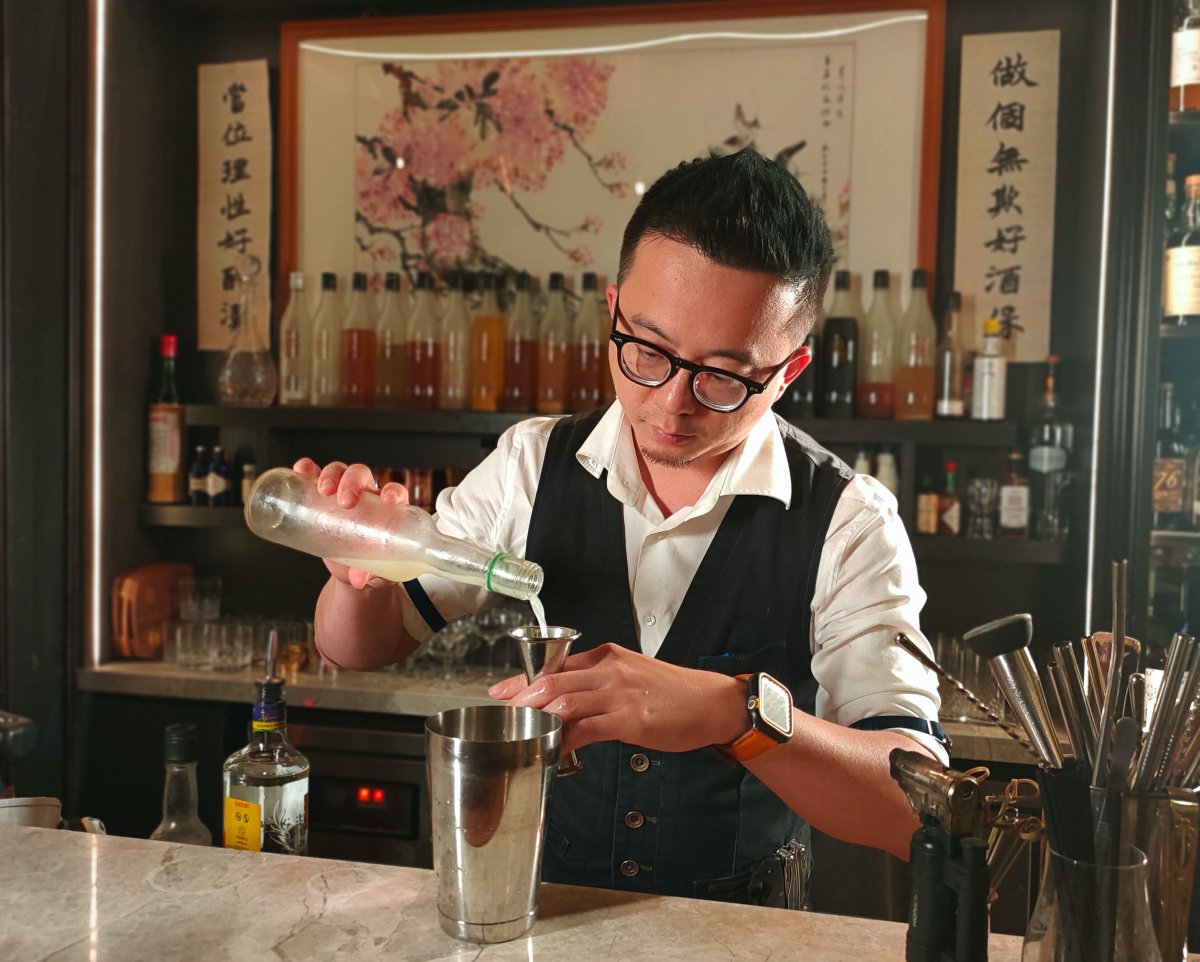 不知道是不是因為Dale本身的氣質的關係,店內的裝潢使用了坊間比較少有的國畫、中式茶櫃與花鳥彩繪元素為主體,搭配上實木、大理石等自然素材,整體設計讓人耳目一新,最有趣的就是他在吧台前自提的對聯「做個無欺好酒保,當位理性好醉漢」。