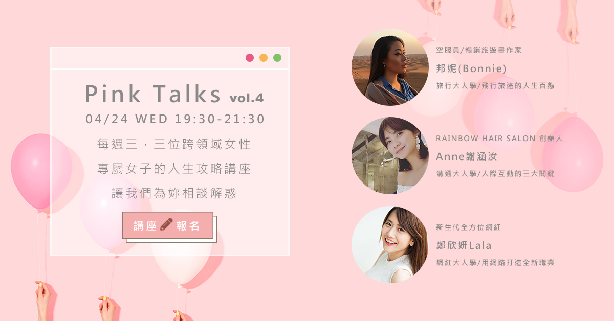 妞新聞 x【PINK TALKS 女子相談所】 講座 Vol.4 熱烈報名中!
