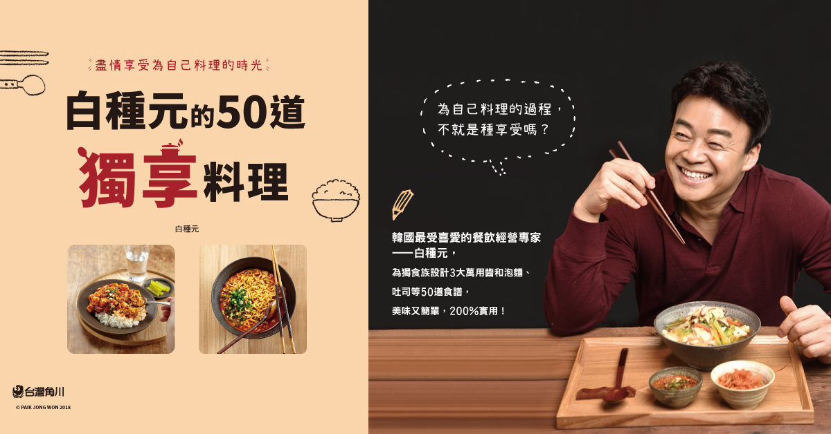 贈書《白種元的50道獨享料理:盡情享受為自己料理的時光》抽獎活動