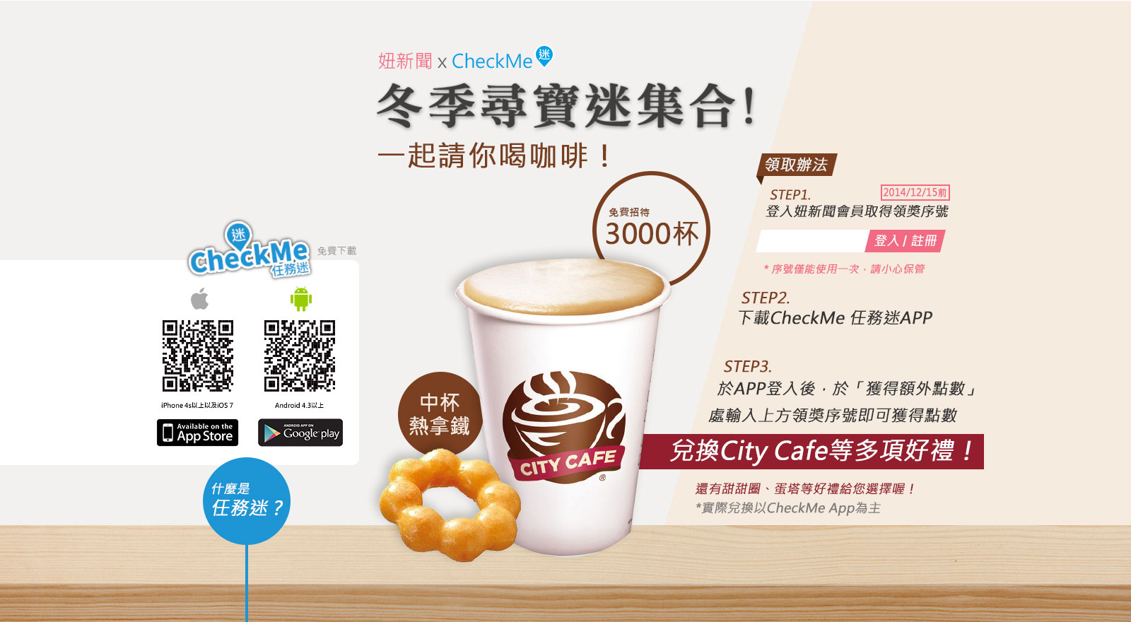 1.活動得獎資格為登入妞新聞會員拿序號方具得獎資格本活動之活動時間為2014/11/14~2014/12/31,以台灣時間為基準。