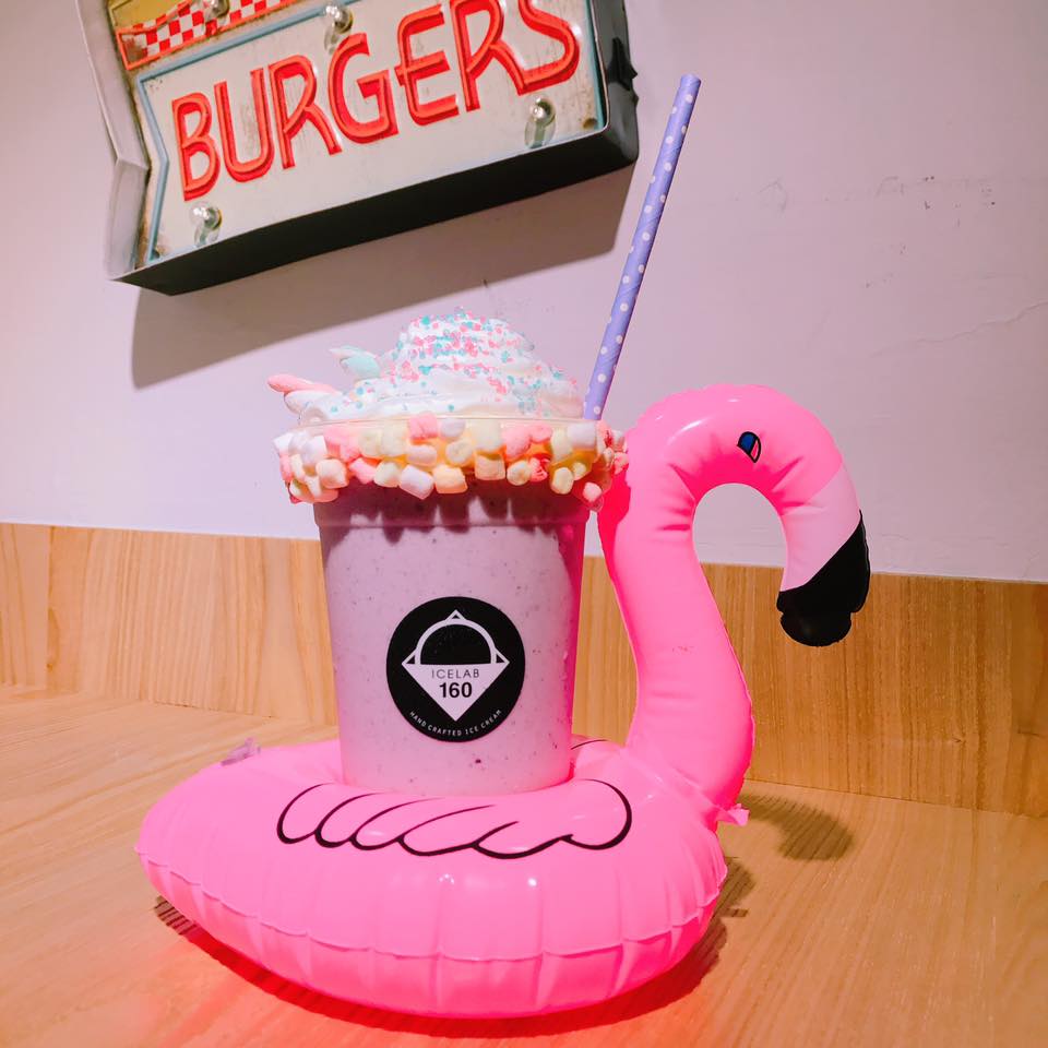 「ICELAB 160」是家帶有美式風格的冰品店,他們家不只主打自製冰淇淋,在今年夏天也加碼推出3款夢幻滿分的奶昔,其中妞編輯點的這款「藍莓獨角獸」,是少女們拍照打卡的首選。美麗的粉紫色的外觀,是由藍莓果粒加入自製的香草冰淇淋而製成,上方還撒上彩虹糖粒、黏上棉花糖,啜飲一口後便是撲鼻而來的藍莓香,喝得到真材實料。