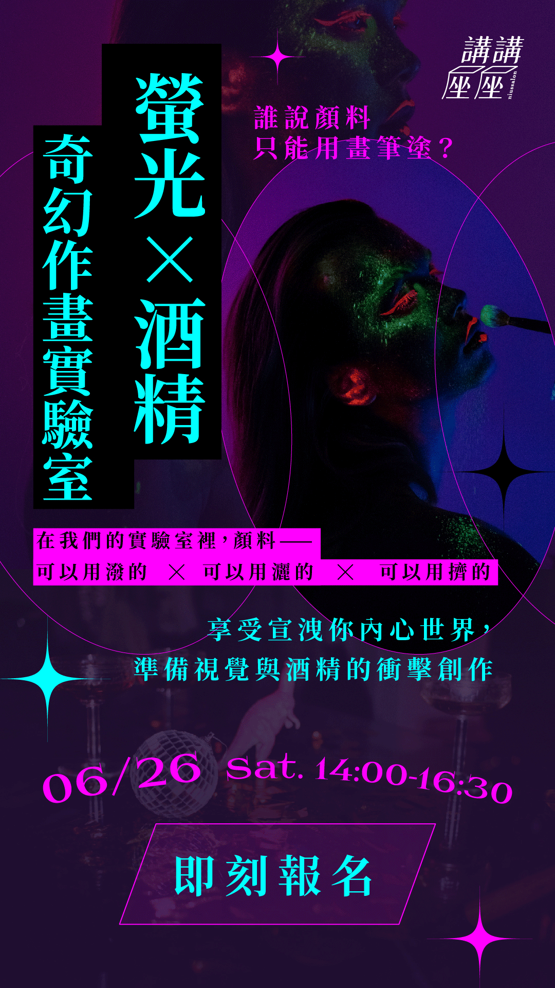 課程講座 /螢光繪畫/特調酒精飲品(參與本課程之學員,建議穿著不怕弄髒的衣服。)