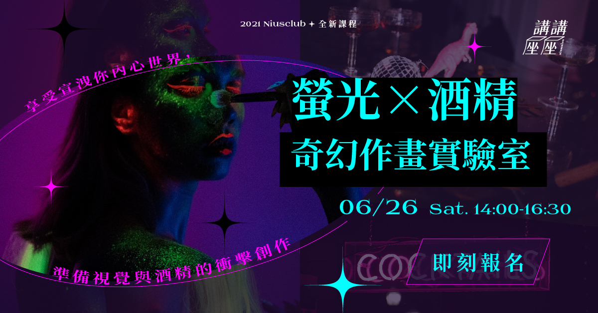 【螢光x酒精奇幻作畫實驗室】2021Niusclub 全新課程-螢光奇幻作畫實驗室.準備視覺、酒精的衝擊創作。