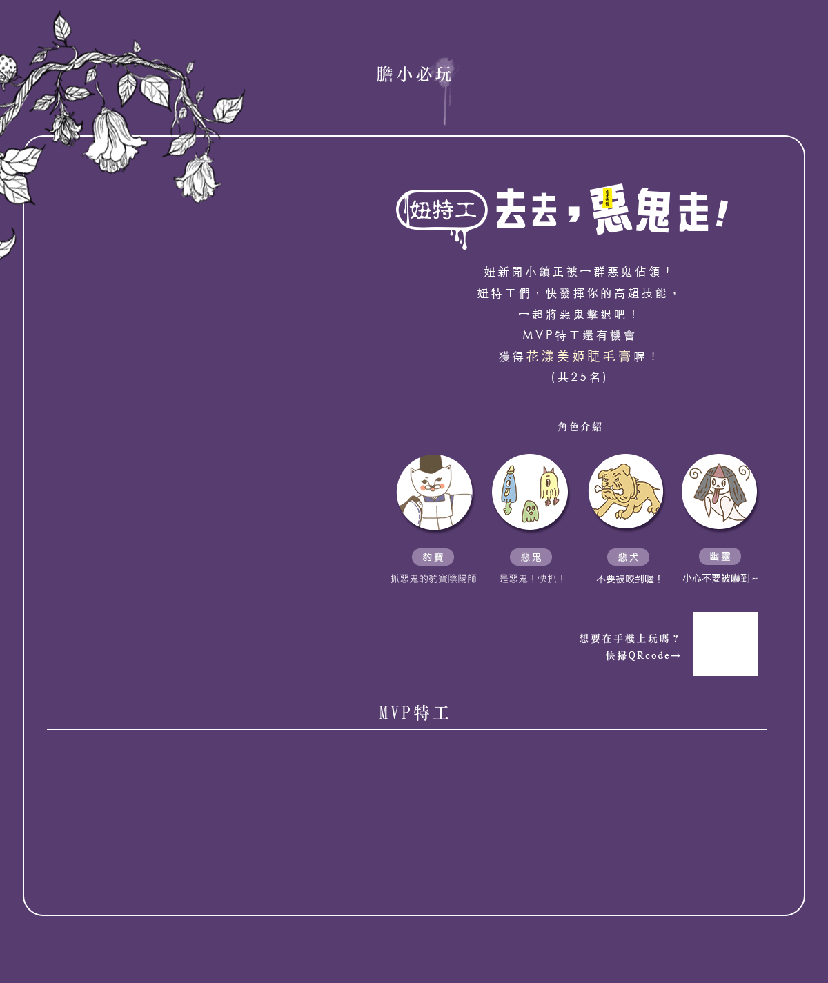 膽小必入!經過一連串的奇幻洗禮,你也可以擁有大大的膽量!馬上參加試膽第一課,追鬼就抽花漾美姬睫毛膏喔!