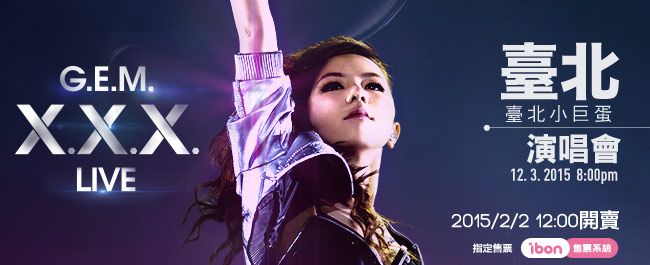 華語新天后鄧紫棋(G.E.M.)「X.X.X. Live」世界巡迴演唱會確定於5月2日在高雄巨蛋加唱一場!鄧紫棋3月12日的台北演唱會門票,於開賣4小時後全數搶光,讓大家見識到這位新天后的超人氣和吸票功力,許多買不到票的歌迷不斷在她的臉書上和主辦單位的臉書上表達希望加場的心聲,還有歌迷特別去放天燈許願她能夠加場,然而因為她在3月14日在泰國曼谷開唱,無法加場,所以她和主辦單位一直在苦思能在台灣加場演出的可能性。這一陣子仍持續關注加場訊息,尤其是南部的歌迷非常希望她可以到高雄巨蛋演出,也頻頻表示希望是在假日演出,歌迷們的心意她都接收到了,於是最後確定要南北兼顧,將在5月2日(六)在高雄巨蛋加演一場,並於2月28日中午12:00,在全台7-ELEVEN ibon售票系統開始售票。