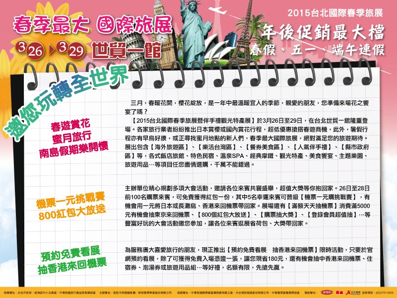 參觀台北國際春季旅展 好康大獎天天送