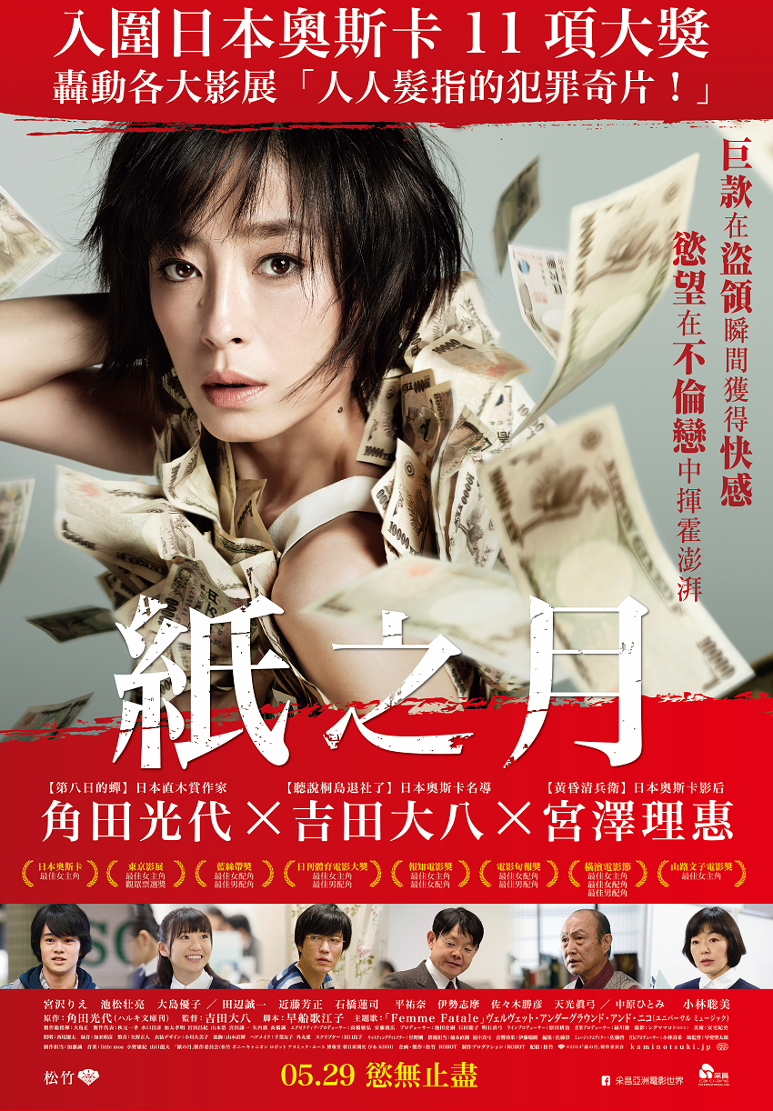 【紙之月】改編自直木賞獲獎作家角田光代的同名暢銷小說,2014年曾改編成電視劇,由原田知世主演。時隔不到一年,又被迅速改編成電影,足見原著小說的獨特魅力。電影版由天賦異稟的吉田大八執導,由於前作【聽說桐島退社了】橫掃當年各大電影獎項,甚至讓他獲得日本奧斯卡最佳導演獎肯定,以至於本片製作消息一出,立刻廣受各界矚目。這回執導【紙之月】,吉田大八依舊以自身獨特的視覺魅力,輔以時而緊繃、時而輕快的敘事節奏,為女主角的放縱和墮落作出最佳詮釋。