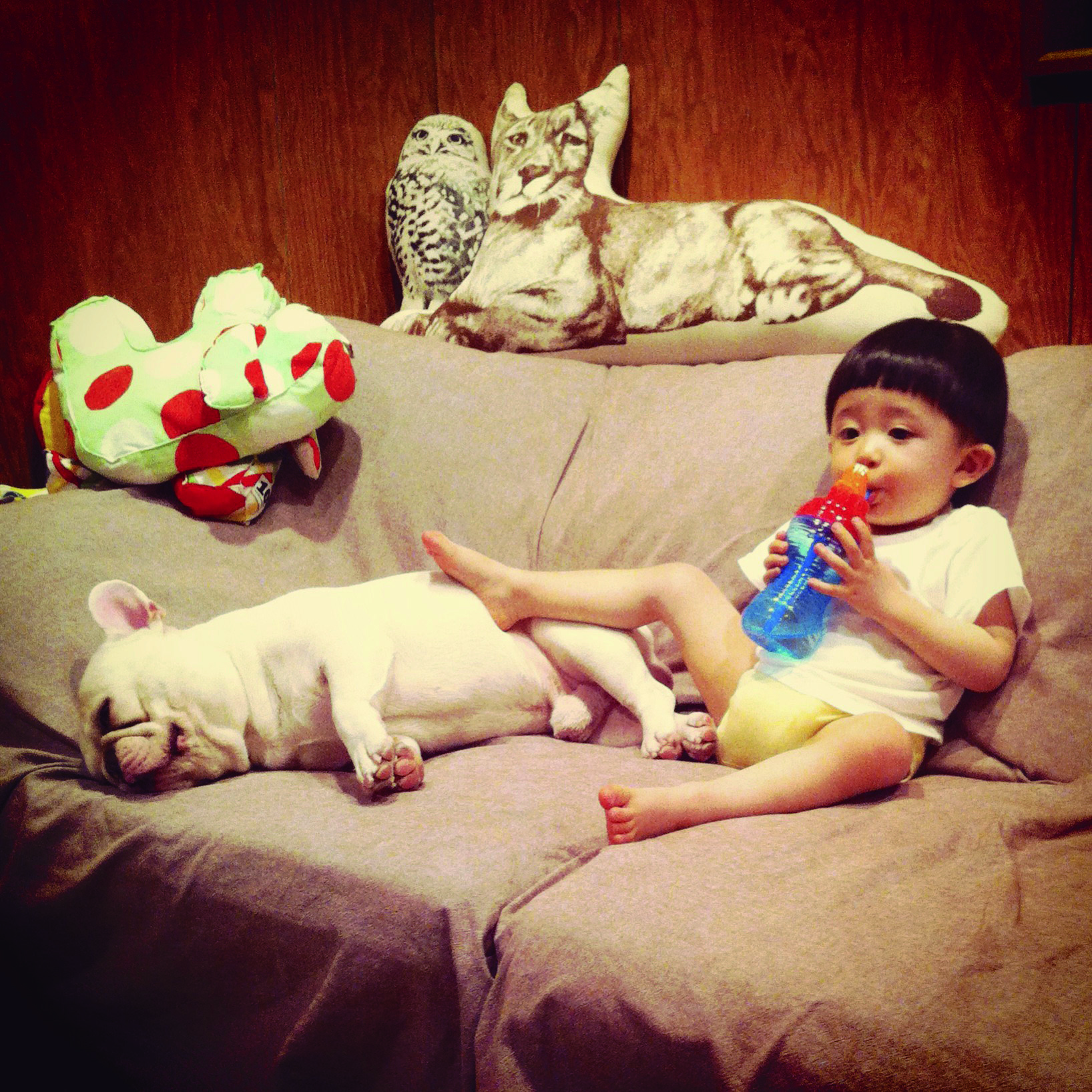 Ayasakai媽媽每天以照片紀錄法國鬥牛犬與三歲兒子的日常生活點滴,並上傳到圖片社群Instagram,親如兄弟的他們總是膩在一起吃飯、玩耍、入睡,溫馨又充滿療癒效果的相片,在網路上大受歡迎。