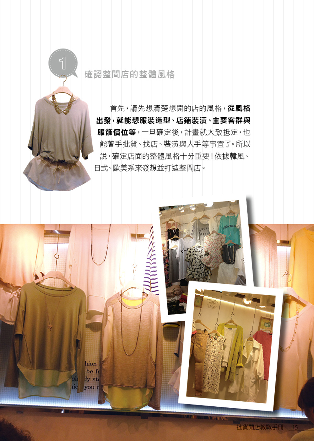 擁有開店夢的各位讀者,也想在服飾業大展長才的讀者,一起來吧!這行雖然不能說輕鬆,但學到的東西也豐富,像是挑貨、經營、溝通、服務等等,都是不同領域的課題,讓人又忙又感到有趣!這是個絕不無聊的工作!不論你想批甚麼貨、想怎樣規劃開店,跟著MINA的步驟,創業成功就不是夢!