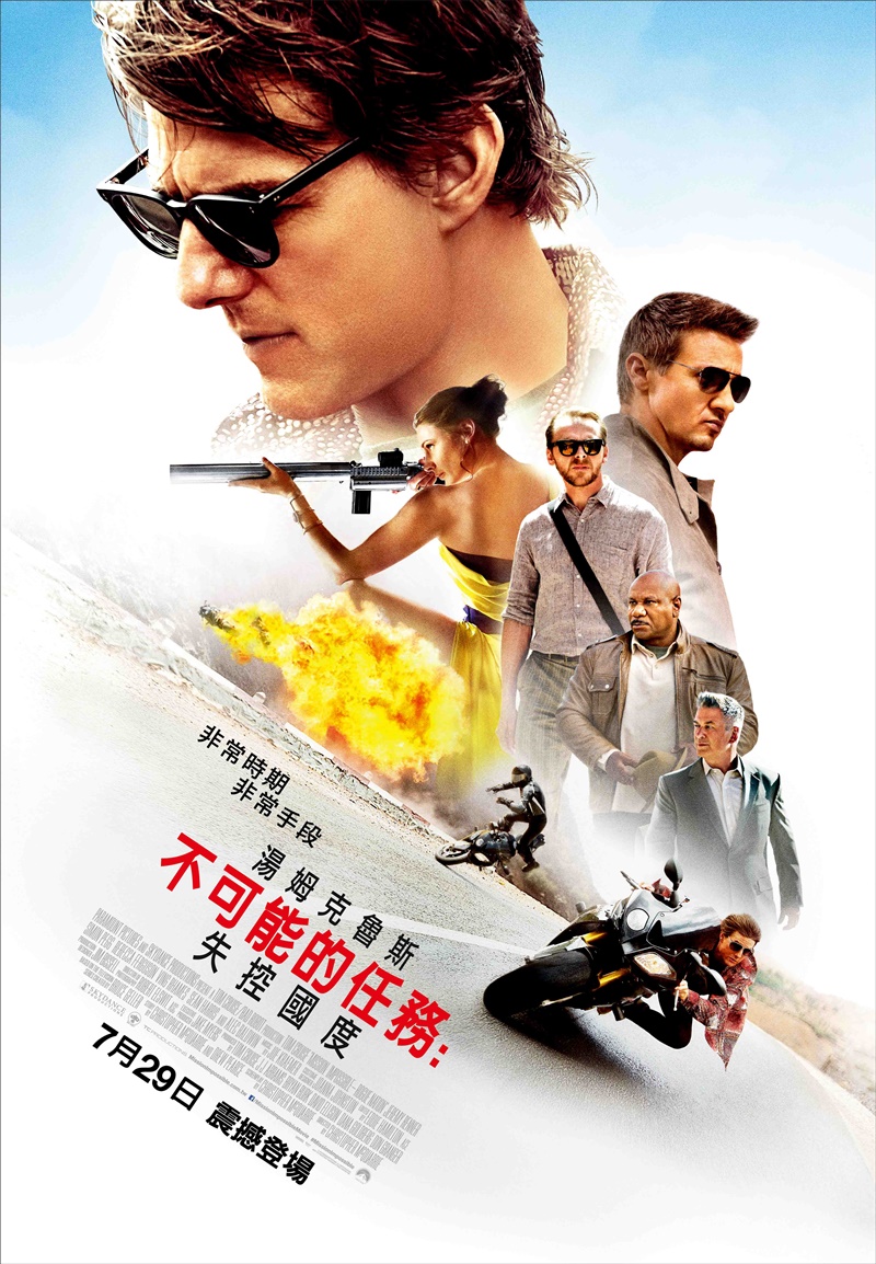 演員:湯姆克魯斯、傑瑞米雷納、賽門佩吉、文雷姆斯(【不可能的任務:鬼影行動】)以及新加入成員亞歷鮑德溫【我想念我自己】、蕾貝卡弗格森【海克力士】