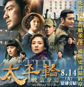 國際大導演吳宇森所執導史詩愛情钜片【太平輪:驚濤摯愛】,集結臺港中日韓14大演技巨星包括金城武、章子怡、宋慧喬、黃曉明、佟大為、長澤雅美、秦海璐、王千源、俞飛鴻、黑木瞳、林保怡、楊貴媚、林美秀和高捷攜手演出,故事描述了三對戀人歷時五十餘年跨越世紀的愛情故事。章子怡飾演的下層女性于真與佟大為扮演的通訊兵不期而遇;金城武扮演的日軍軍醫嚴澤坤同長澤雅美扮演的日本女孩雅子苦戀;黃曉明飾演的將領雷義方和宋慧喬扮演的富家千金周蘊芬結為伉儷。三對主人公的亂世愛情看似本無交集,卻因命運交錯被一艘太平輪的沉浮緊密鎖定在一起,下集【太平輪:驚濤摯愛】8月14日磅礡上映。