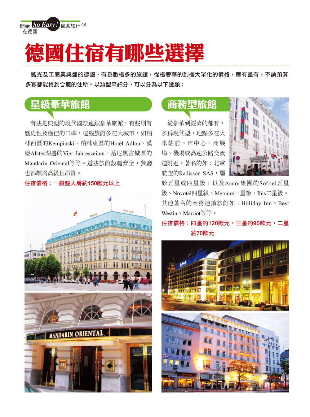 介紹了德國常見的住宿型態,包括青年旅館、民宿、度假區旅館、中小型旅館、商務與星級豪華旅館,幫你挑選出最適合的住宿方案。