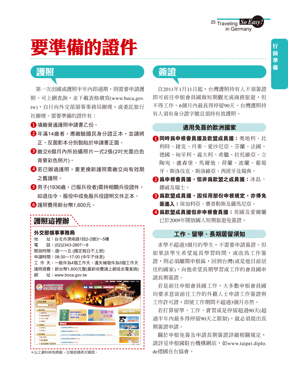 出發前的資料蒐集,簽證、行李的準備等資訊,讓你一手掌握德國。